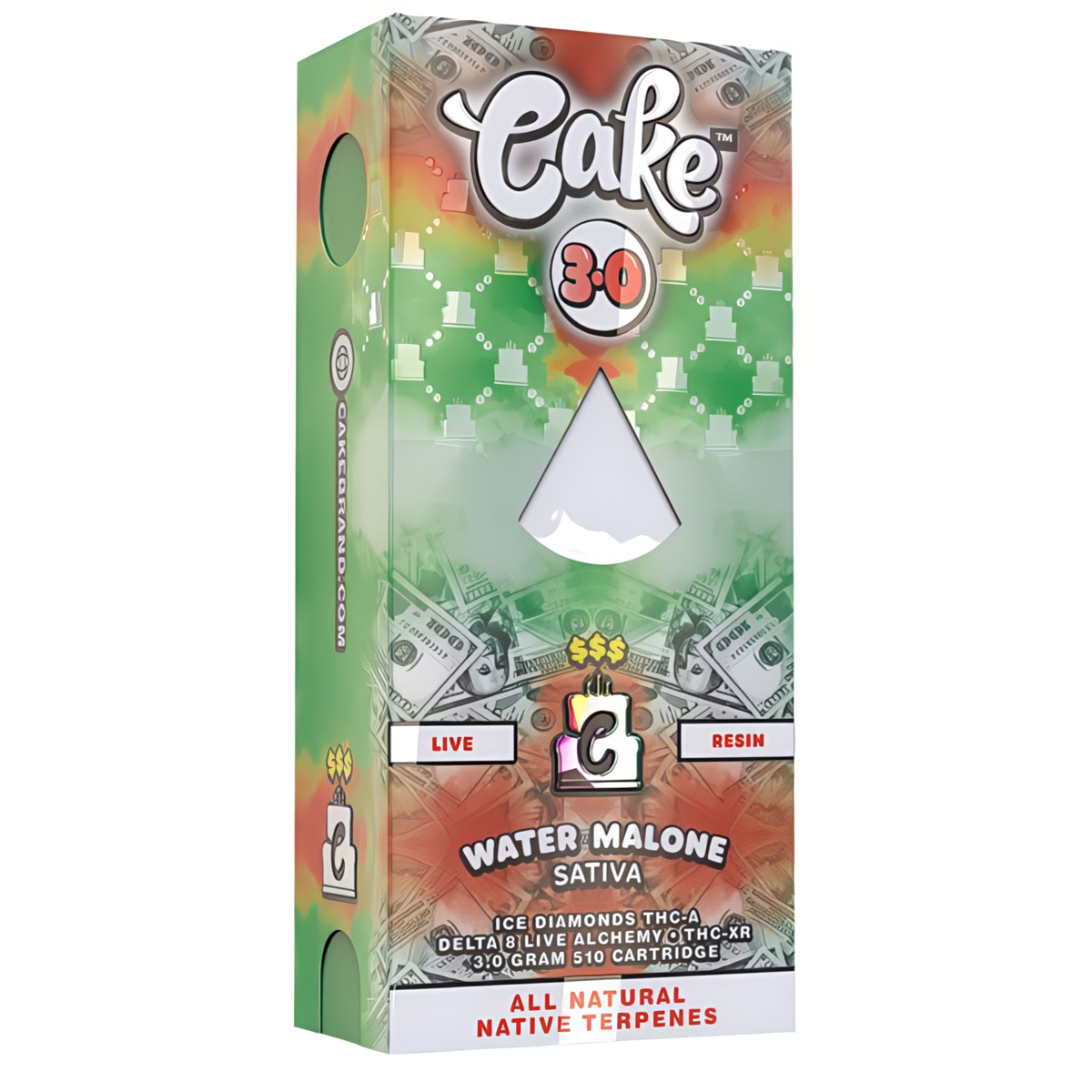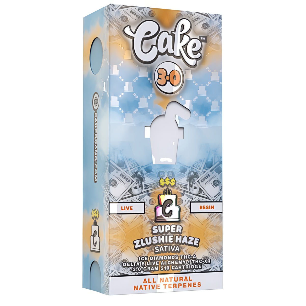 Elevate your vaping journey with the revolutionary Cake $$$ Cartridge, a premium 3-gram 510 threaded cartridge that transforms your cannabis experience with unparalleled potency and flavor. This cartridge is a masterpiece of innovation, featuring a unique concoction of ice diamonds THC-A, live alchemy delta 8, THC-XR, and naturally-sourced terpenes, crafting an unmatched entourage effect. Cake introduces 12 exotic new strains across hybrid, indica, and sativa categories, meticulously designed to satisfy the palate of every cannabis aficionado.