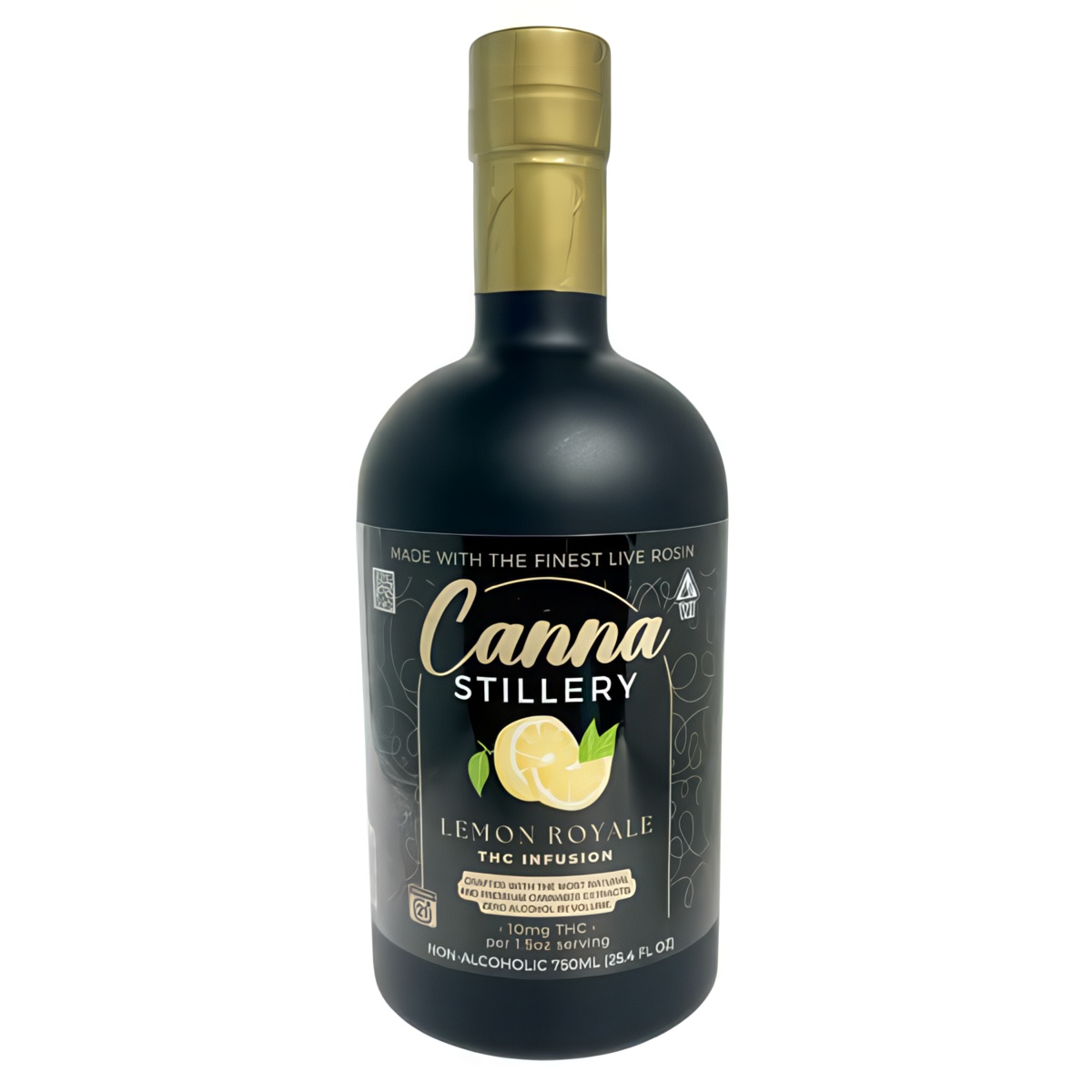 Zesty, smooth, and non-alcoholic—Canna Stillery Lemon Royale delivers bold lemon flavor with 10mg THC per 1.5 oz serving. Perfect for creative nights, chill vibes, or sharing with friends, this 750mL bottle brings a modern twist to your sipping ritual. Clean, crisp, and crafted for good times.