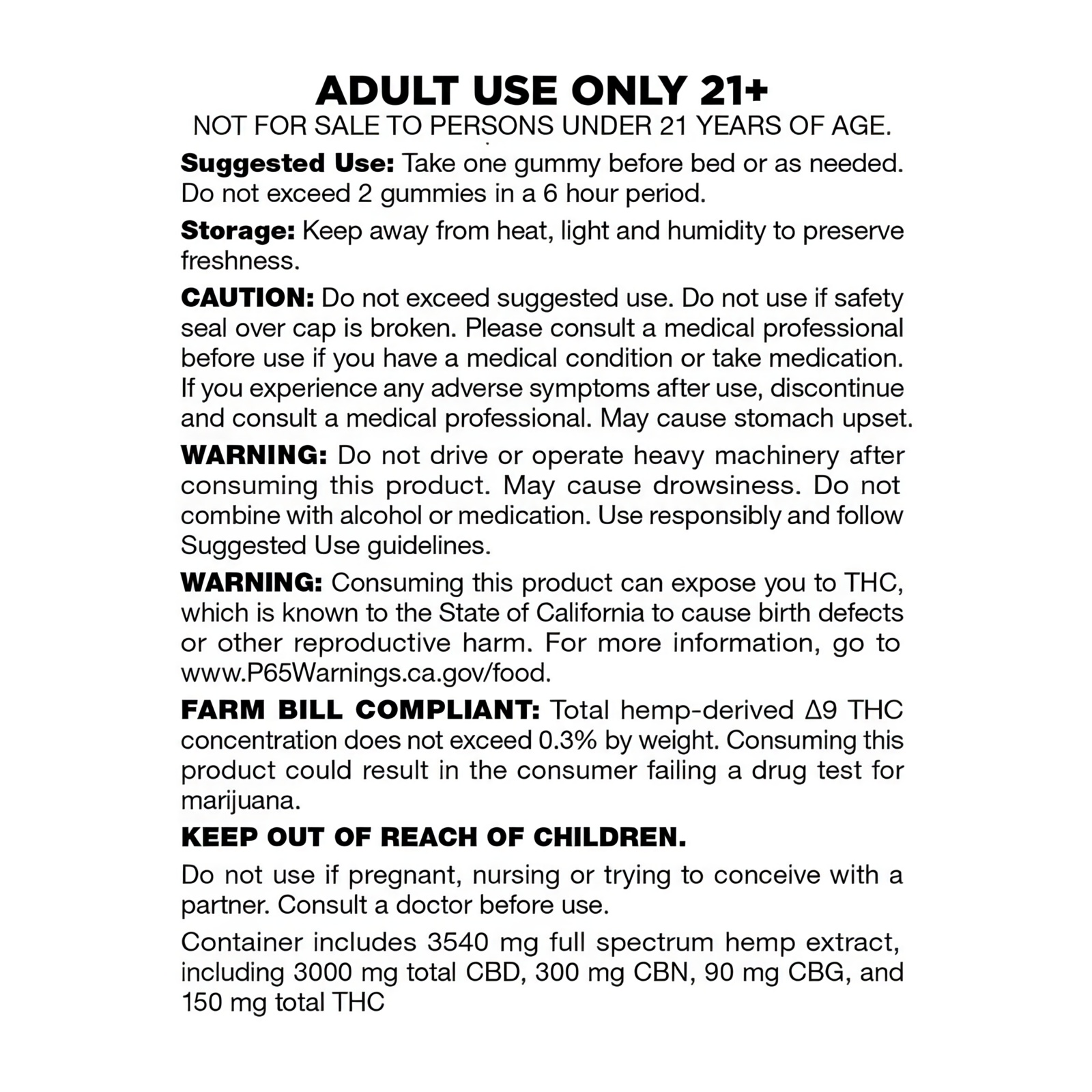 - Keep Out of Reach of Children: Not for use by individuals under 21. If pregnant, nursing, or trying to conceive, consult a doctor before use.