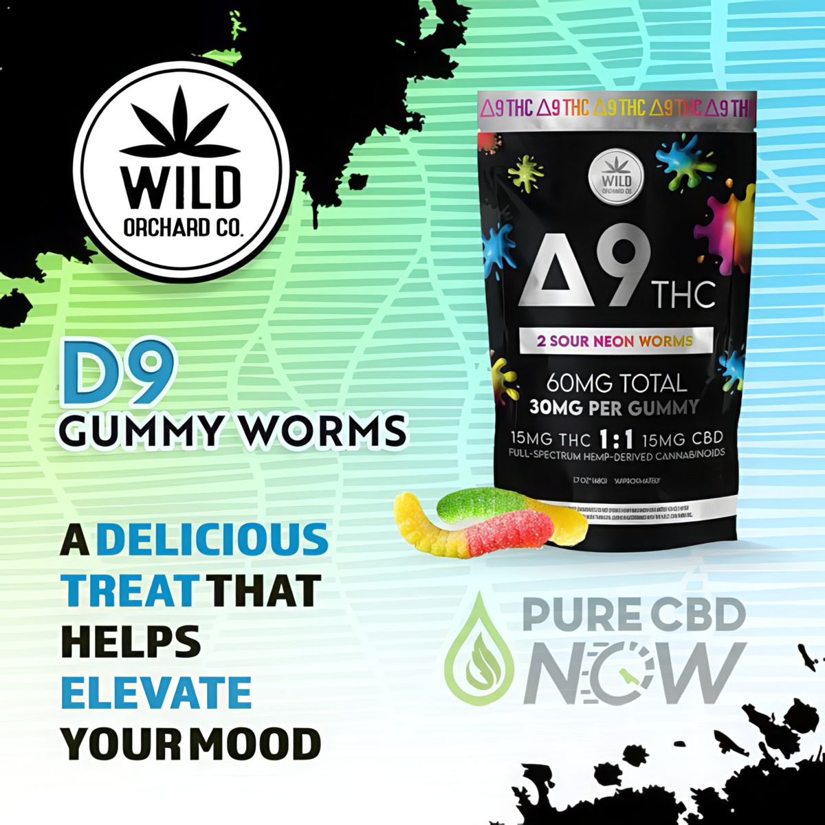 Wild Orchard’s Sour Neon Worms may well be the most gloriously entertaining way you’ve ever ingested Delta 9 THC, with lip-puckering sour, juicy flavors and astonishingly vivid neon colors. Each Sour Neon Worm gummy contains 15mg of organically cultivated Delta 9 THC and 15mg of CBD. All Wild Orchard Co. Delta 9 is 100 percent hemp-derived and cultivated in the United States for greater quality and purity.