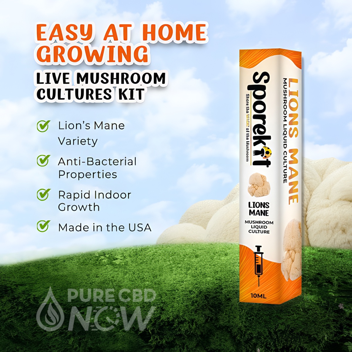 With our sterile Golden Mushroom Syringe, you can cultivate your own Lion’s Mane Mushrooms. Each syringe contains 10 cc of live liquid mushroom cultures, ready to be introduced to your chosen substrate. In just a few weeks, you can start harvesting your own mushrooms.