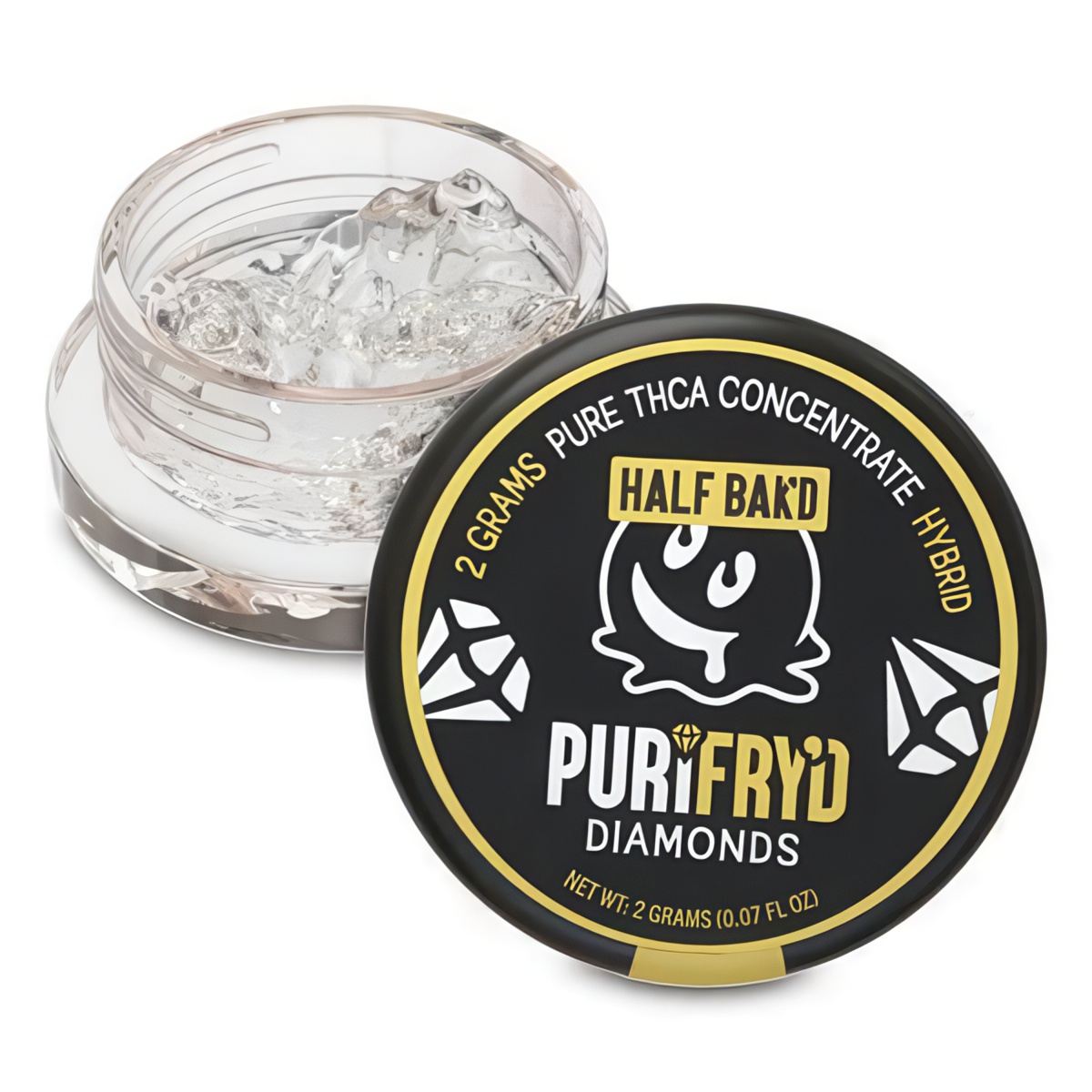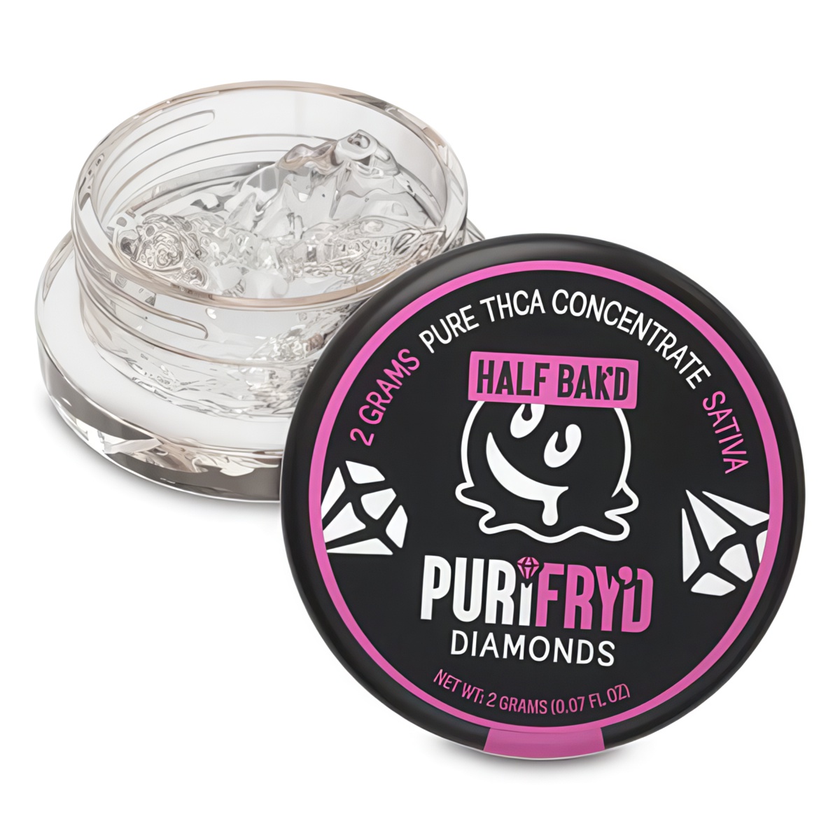 Enjoy a premium concentrate experience with Half Bak’d Purifry’d Diamonds, where potency, flavor, and quality combine to deliver a truly elevated session.