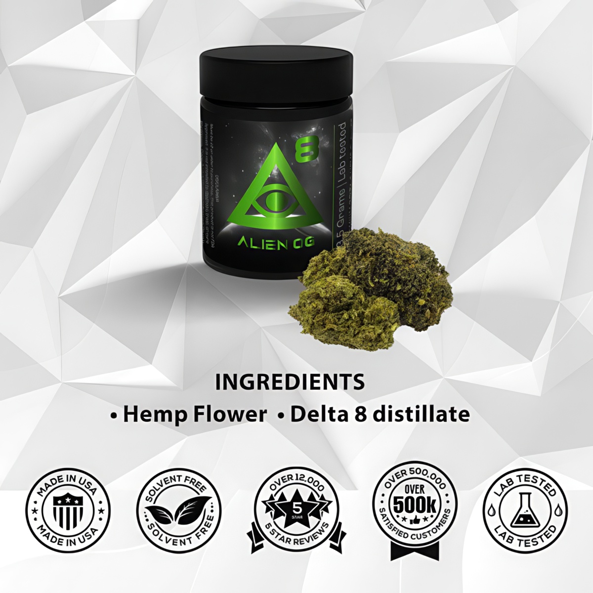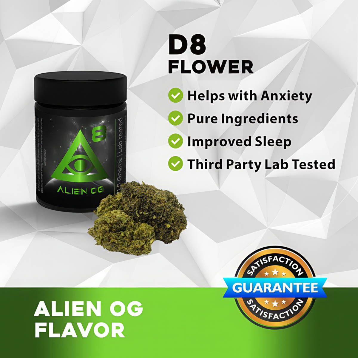 - Premium Strain: iDelta8 Flower Alien OG is a high-quality hybrid strain, offering an excellent balance between relaxation and invigoration.