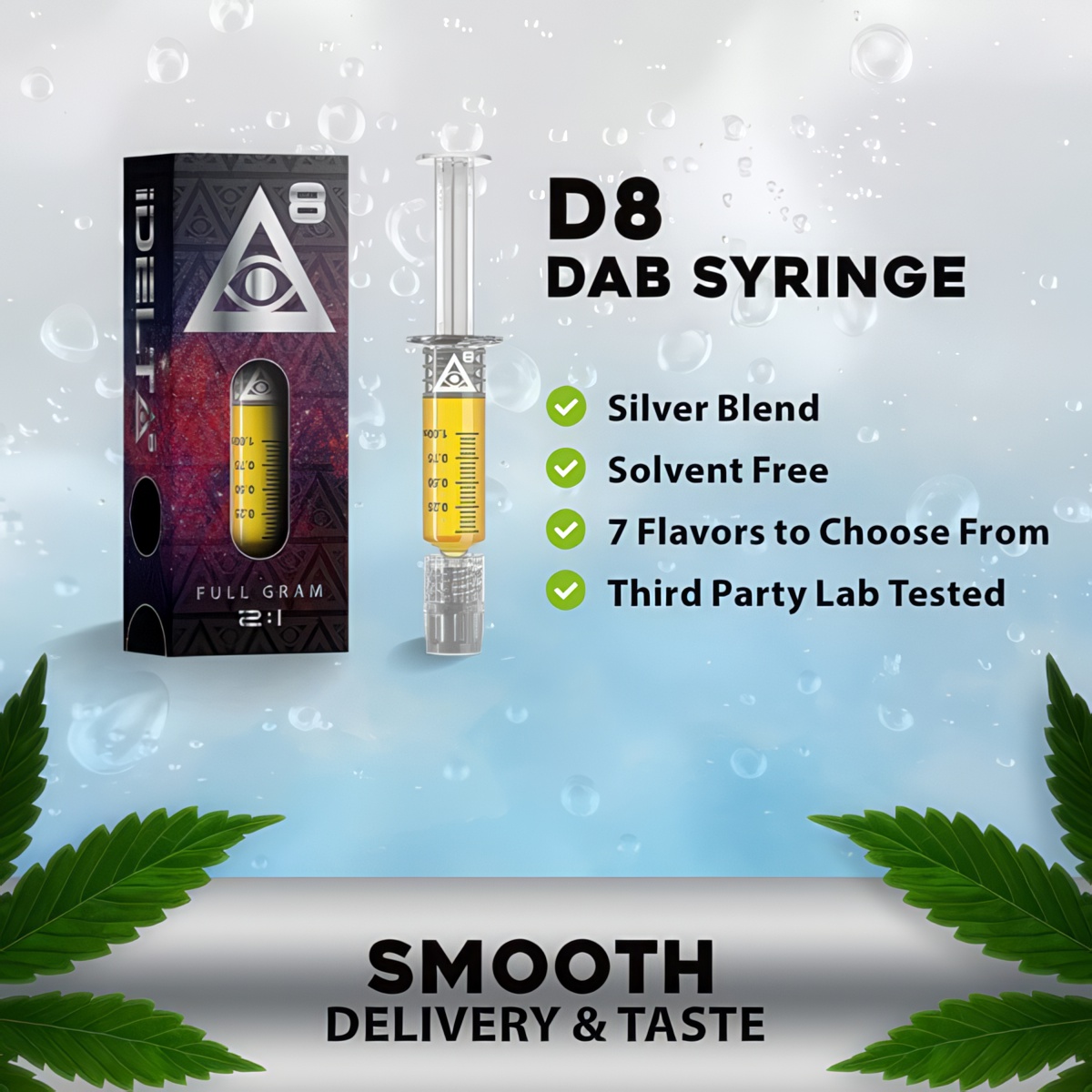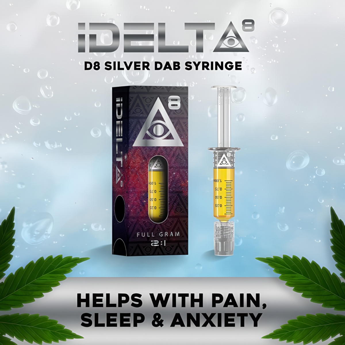 - Ease of Use: Designed for use with a dab rig or similar device, the iDELTA8 Silver Dab Syringe provides a quick and straightforward way to enjoy the effects of Delta 8 THC and CBD.