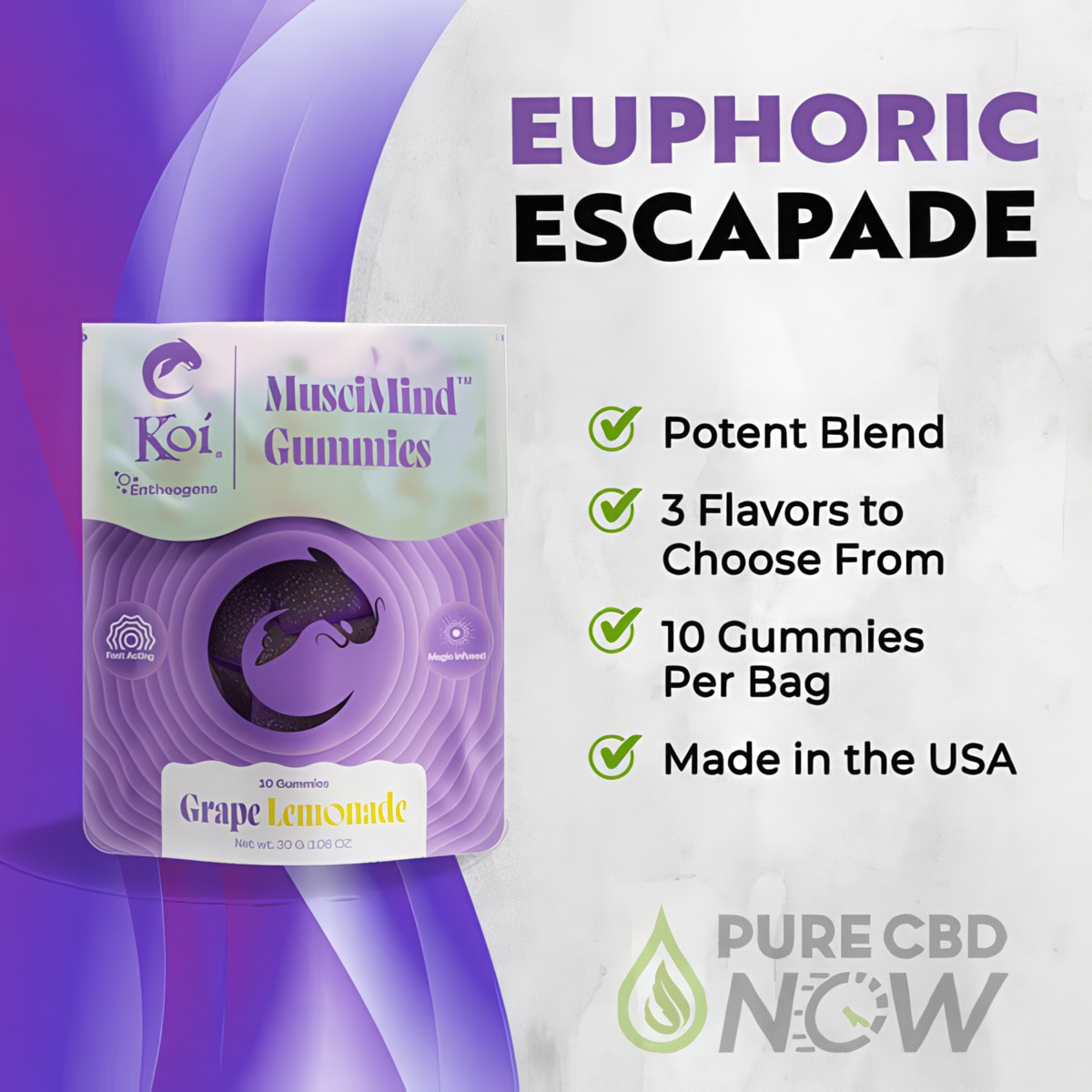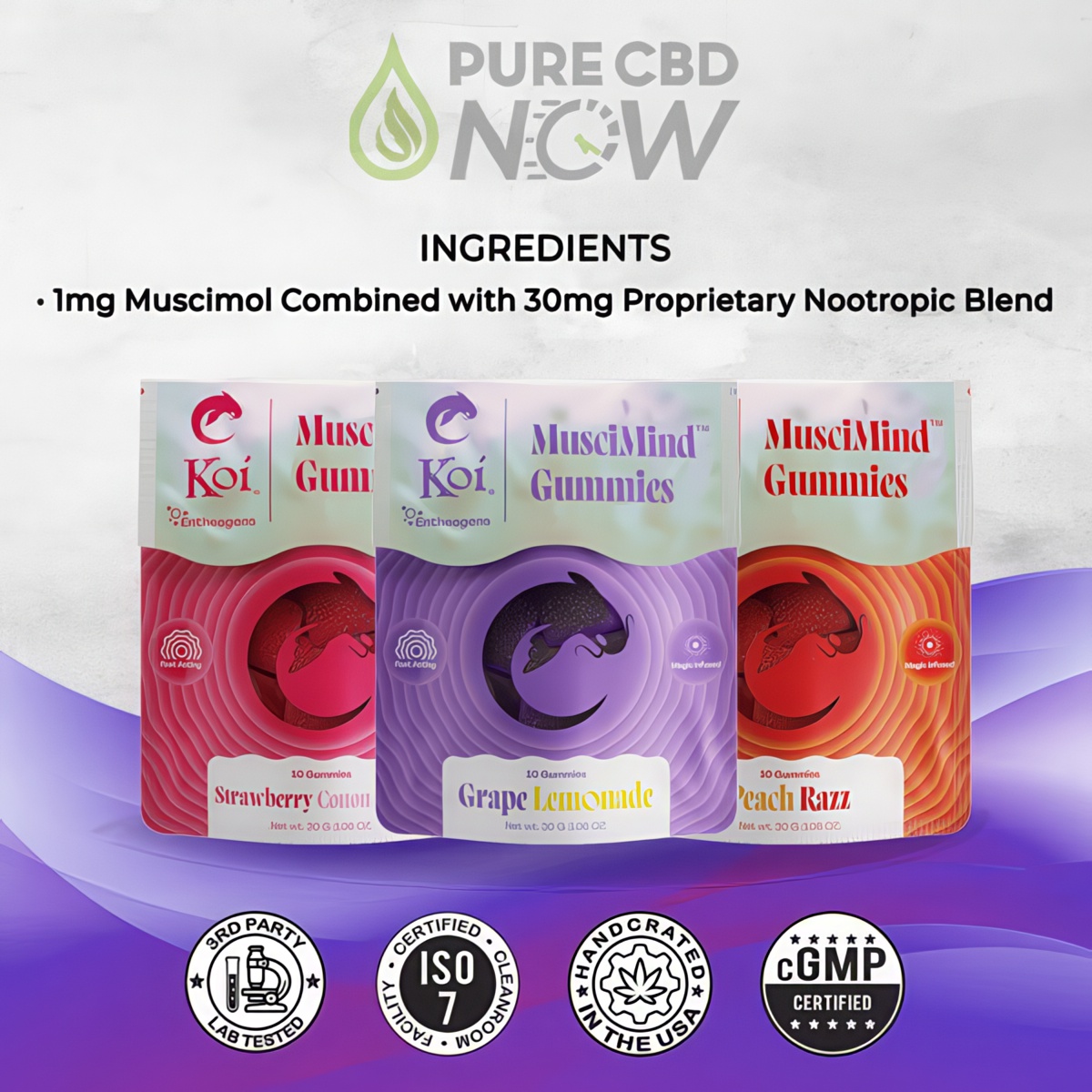 - Each gummy boasts a potent mix: 1mg muscimol combined with a 30mg proprietary nootropic blend