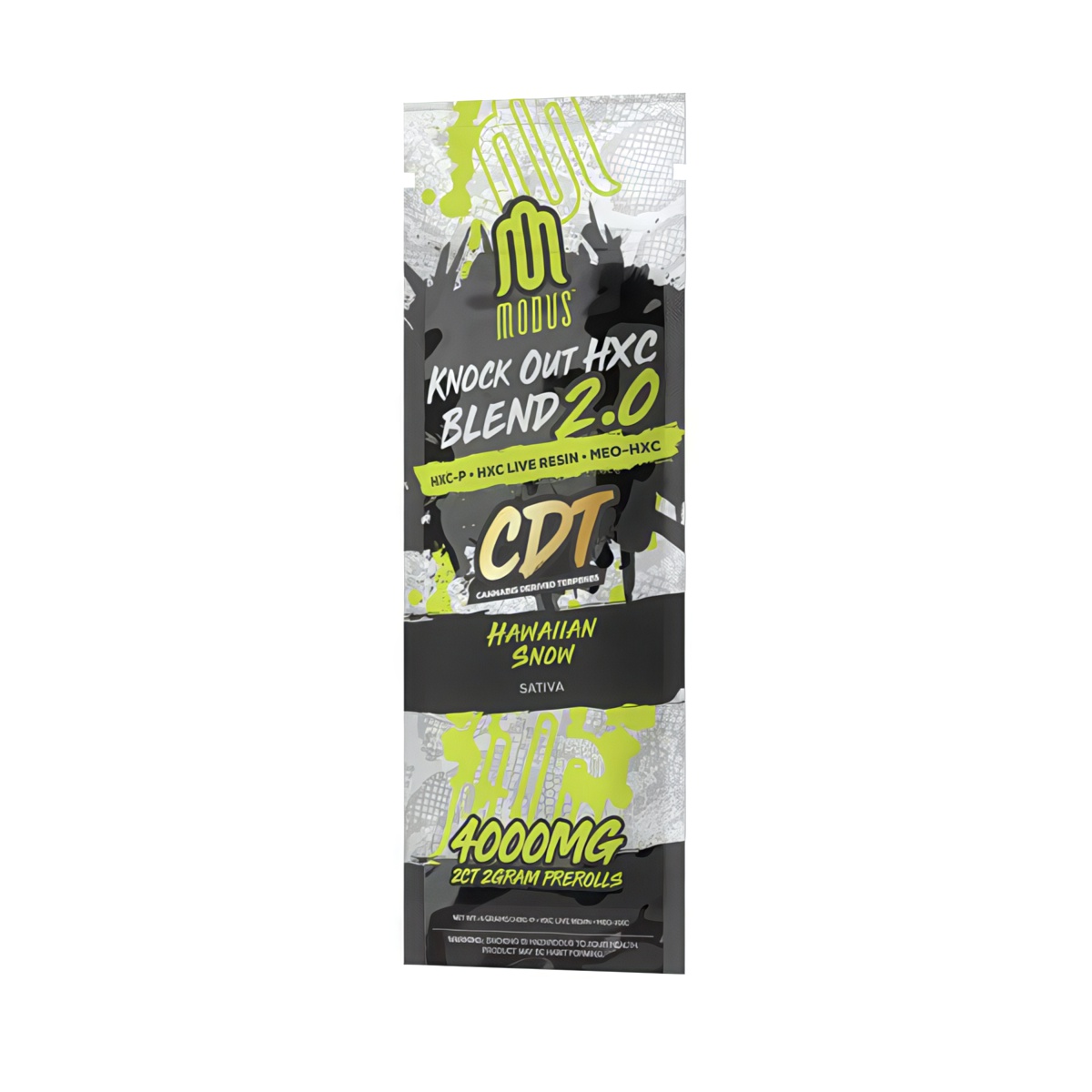 At Modus, we pride ourselves on creating unique and high-quality cannabinoid products, and our Knockout HxC 2.0 Prerolls are a testament to this commitment. These prerolls are meticulously crafted using a proprietary blend of potent cannabinoids and terpenes, selected to deliver an unparalleled experience of euphoria and relaxation. Each preroll is designed to elevate your senses and transport you to a state of pure bliss.