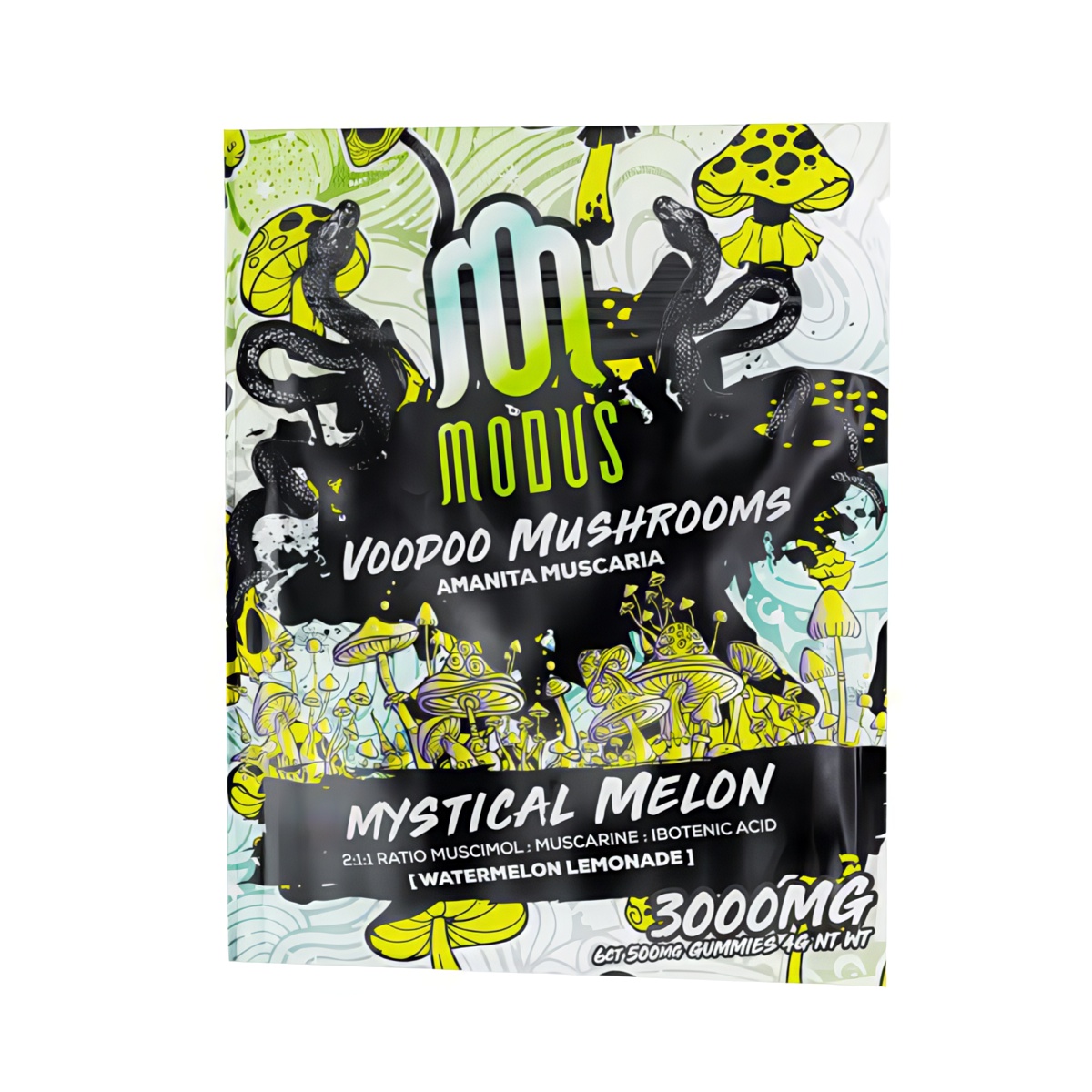 Unveil the magic within with Modus Voodoo Mushroom Gummies, a bewitching concoction crafted for those who dare to venture into the mystical realms of flavor and experience. Each gummy in this enchanting collection is infused with a potent blend of Musicmol, Muscarine, and Ibotenic Acid, meticulously balanced in a 2:1:1 ratio to ensure a harmonious and profound journey. At 500mg per gummy, this 3000mg Strawberry Elixer pack promises a tantalizing adventure with every bite.