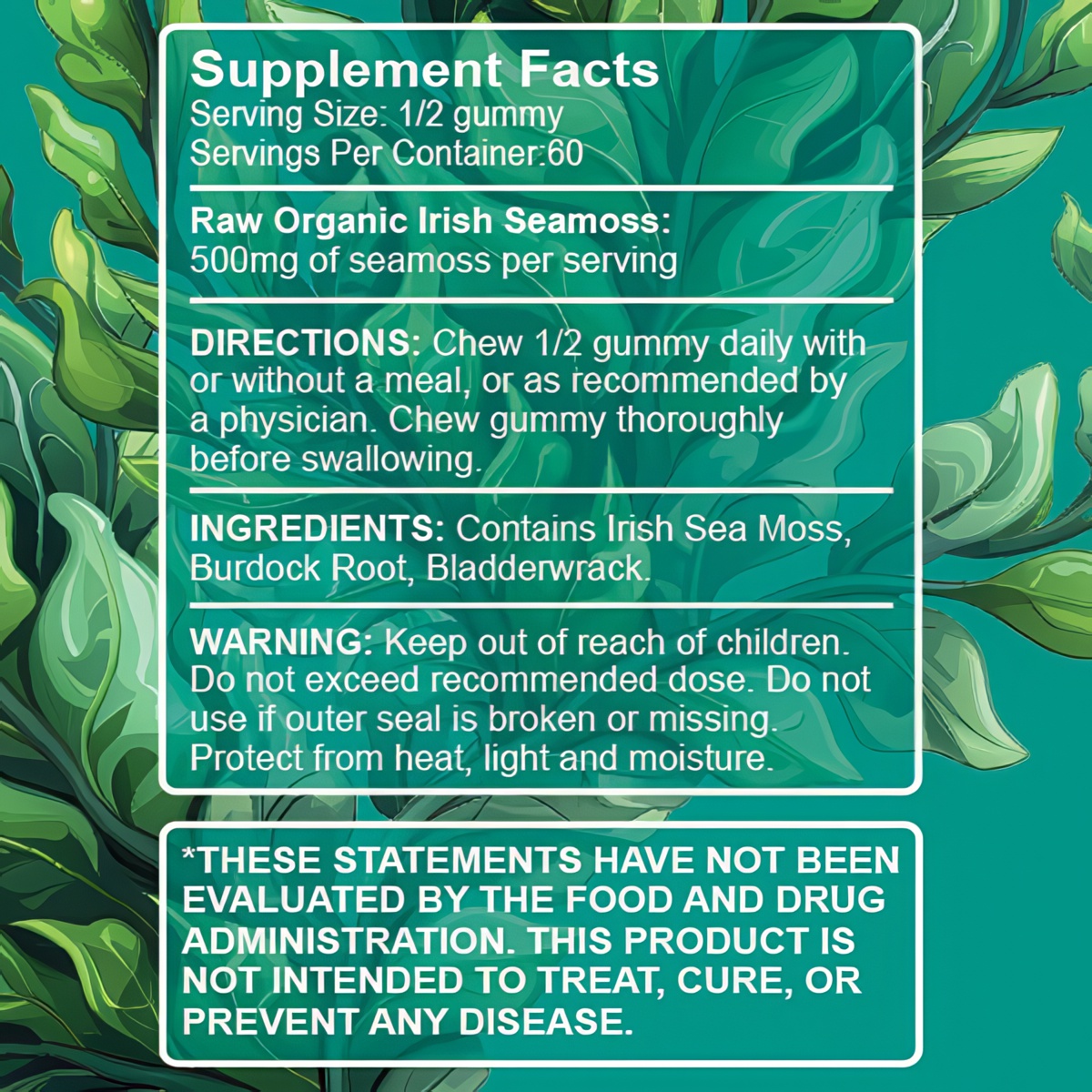 Enhance your daily nutrition with our Sea Moss Gummies. Order your jar today and experience the natural benefits of raw, organic sea moss in a delicious, easy-to-take form.