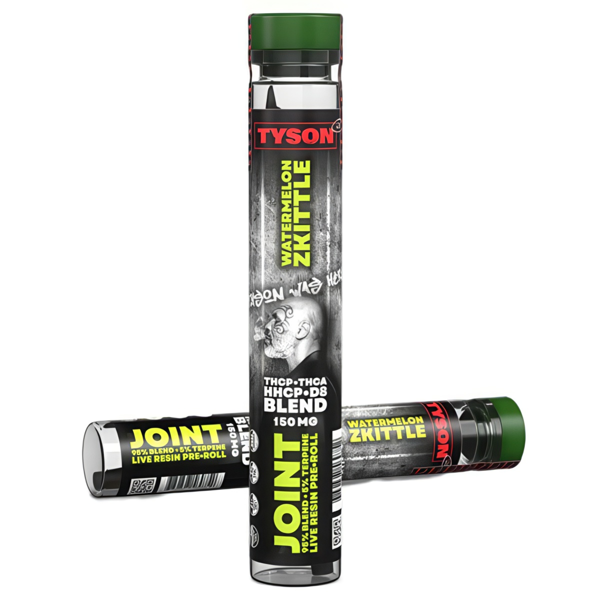 Immerse yourself in the exclusive Tyson 2.0 Live Resin Joint experience, meticulously crafted under the guidance of the legendary Mike Tyson. These premium pre-rolled joints are a testament to quality and performance, each loaded with 0.7 grams of the finest cannabis and enriched with 150mg of a potent cannabinoid mixture including THCP, THCA, HHCP, and D8. This powerful combination ensures a smoking experience that’s both profound and memorable.