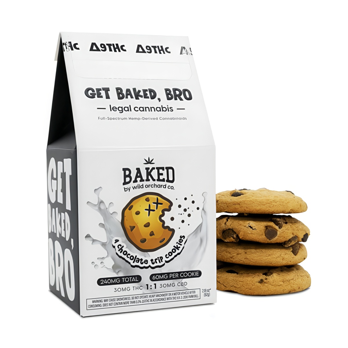 The baked chocolate trip cookies from Wild Orchard Co. are incredibly chewy, sweet, and delicious! These powerful cookies have 30MG of THC and 30MG of CBD. Each cookie contains 60MG of full-spectrum cannabinoids derived from hemp. made with American-grown Delta-9. Our products don’t lose their efficacy or purity because we use only the cleanest extraction techniques and third-party lab testing.