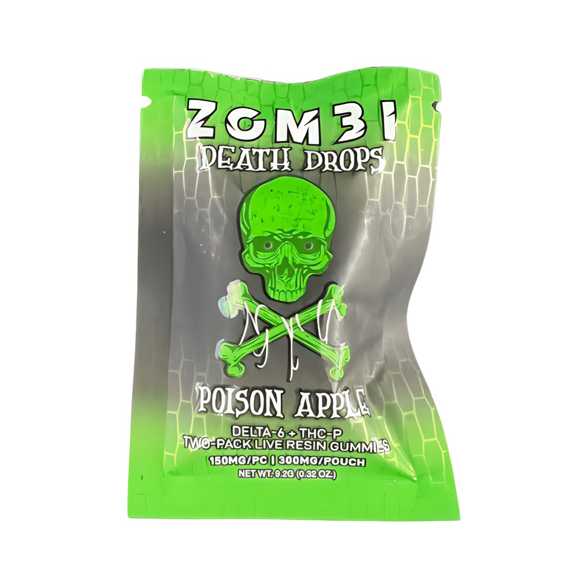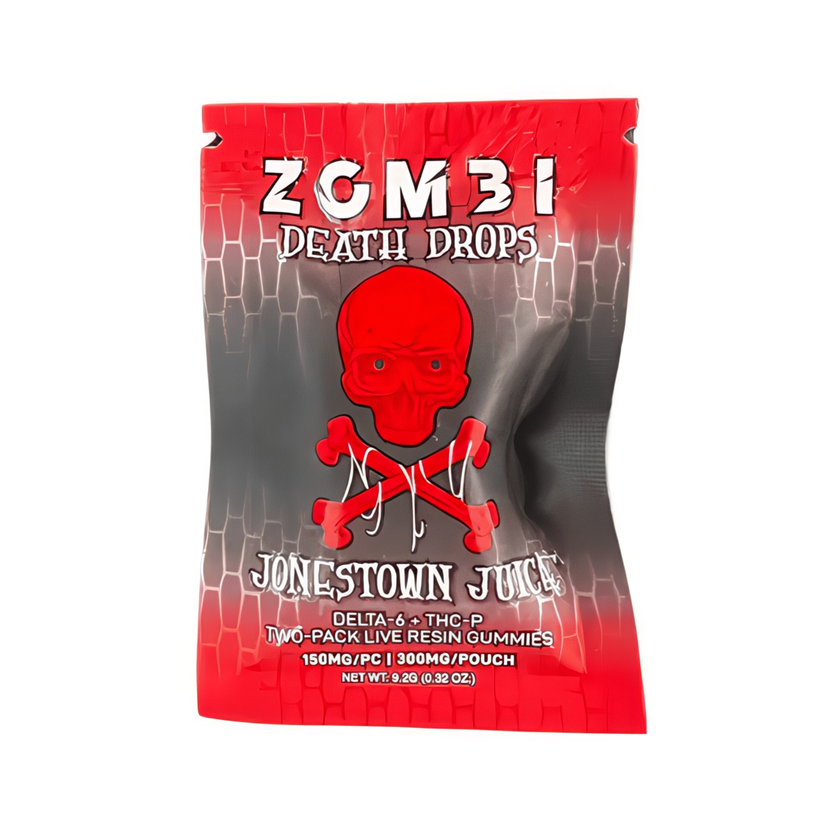 Introducing the Zombi Death Drops Gummies 150mg | 2ct, a bold addition to the Zombi brand’s rapidly growing product line. Known for crafting potent and flavorful hemp-based products, Zombi delivers again with these bite-sized treats. Each package includes 2 gummies, with each gummy infused with 150mg of live resin delta 6 THC and THC-P, offering a total of 300mg per package. These gummies are designed to provide a powerful experience in a convenient, easy-to-consume format.